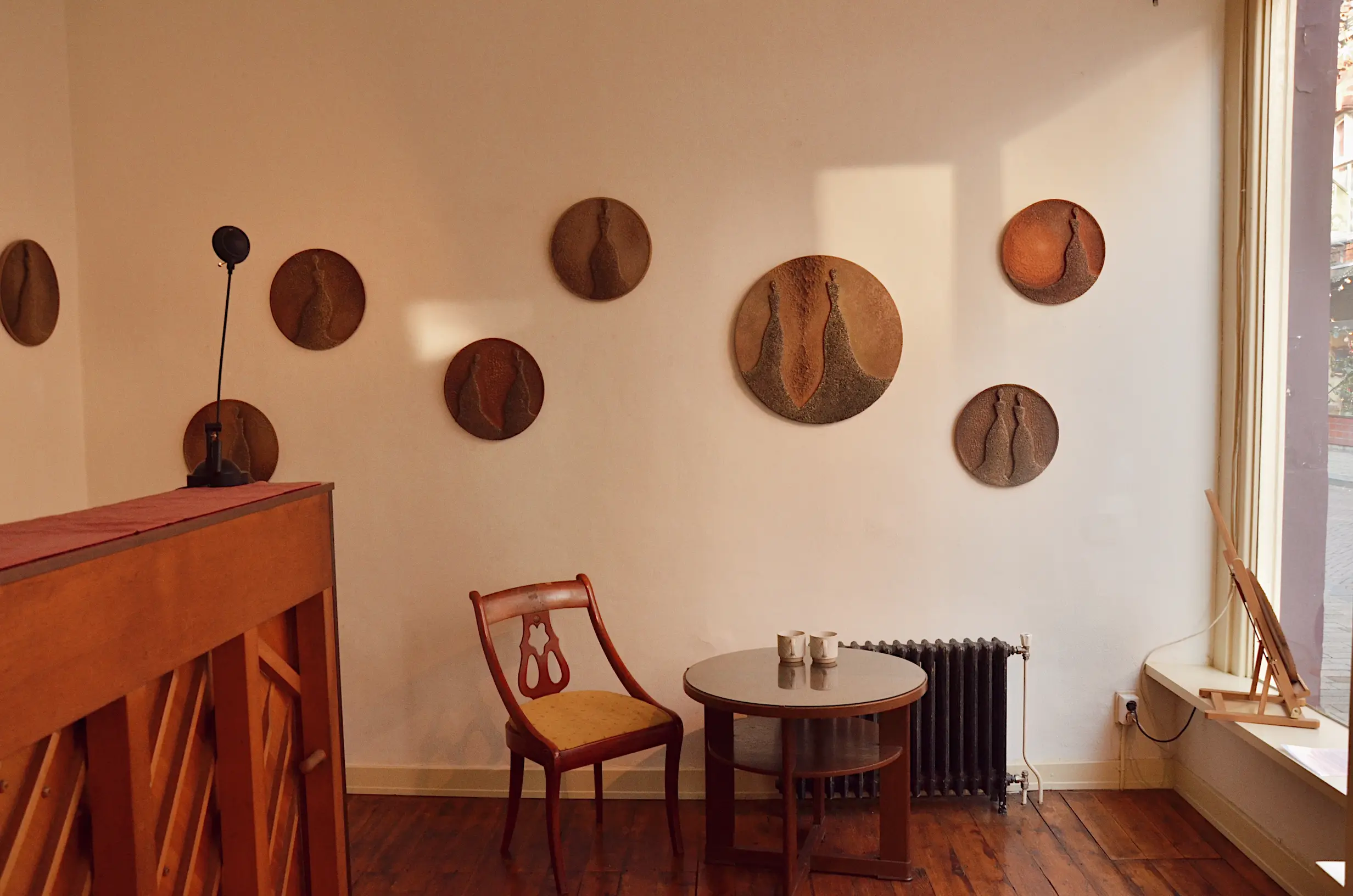 Terēze Lība (2001, Latvia) is an artist based in Tilburg. She creates sculptural paintings on wood, using acrylic paint and natural materials such as sand and stone. Layer by layer, she sculpts, builds texture, and adds colour.