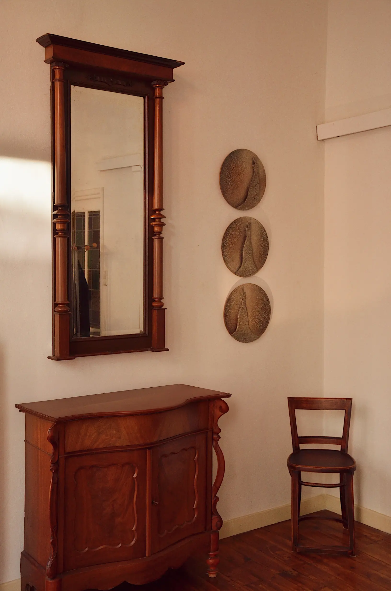 At the centre of Terēze Lība’s work stands the female figure: not as ornament, but as anchor. Her strength is unmistakable. She stands strong and tall – in wind, light, and silence – attuned to the rhythm of the world around her. Each piece holds a quiet tension between strength and surrender. Her figures are not heroines of action, but embodiments of inner composure: upright, calm, and assured.